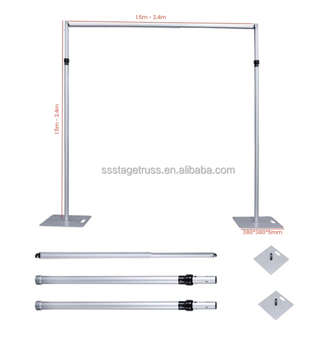 Soporte de tubo y cortina de aleación de aluminio de 2,4x2,4 M, soporte de fondo ajustable para decoración de fiesta de boda, stand de exhibición